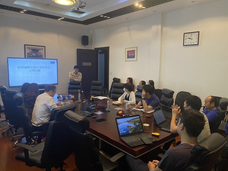 为深入学习贯彻党的二十大精神,理解中国式现代化的理论内涵,2023年5月30日上午9:30,草莓视频 党总支在所345会议室举办了一场主题为《如何理解中国式现代化的文明贡献》的专题党课,本次党课由副所长屠启宇同志进行主题演讲,副所长、党总支副书记周海旺同志主持学习研讨,全所党员同志参加。