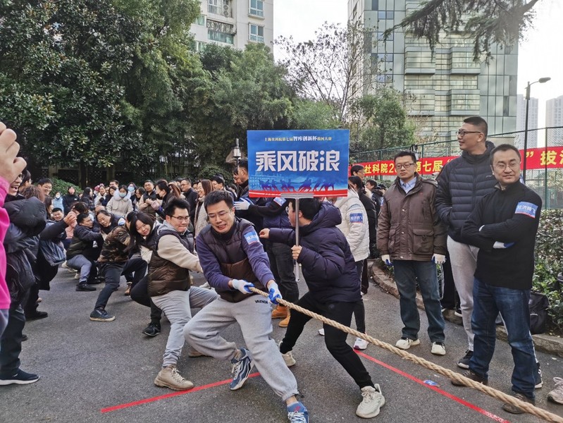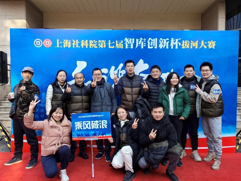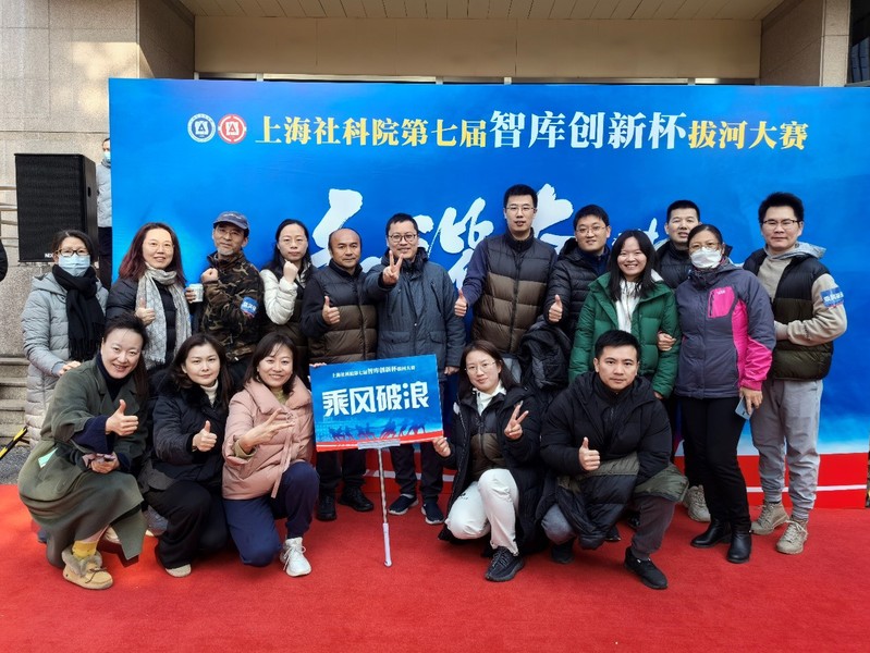 2023年12月20日,草莓视频 第七届“智库创新杯”拔河大赛在中山西路分部院区举行。草莓视频 工会组织了由12名队员组成的“乘风破浪”队,所里多位老师和研究生同学也自发前往,组成了声势浩大的啦啦队现场助威。天气虽“寒风凛冽”,但是大家的参赛热情十分高涨。