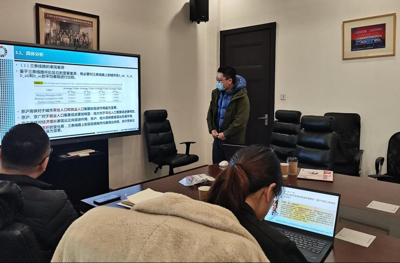 陈晨助理研究员主要从事城乡规划、创新空间和人口地理方面的研究。本次交流会上,陈晨助理研究员选取京沪、京广、哈大高铁沿线的城市作为研究对象,基于双重差分法的思路,从人口集聚、经济发展、建设用地扩张三个维度系统评价了高铁通车对城市发展的促进作用,并对评价结果进行系统聚类,进一步识别影响效果的异质性。