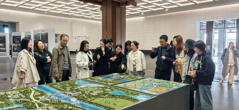 活动的第三站是方厅水院。这座坐落于太浦河之上的标志性建筑,是示范区“水乡客厅”的核心功能节点,集跨域规划展示、绿色技术创新、学术交流于一体。在讲解员的引导下,职工们通过现场观摩和全景沙盘演示,系统了解了示范区在国土空间规划、生态环境共保联治、基础设施互联互通等方面的突破性进展。站在“一院跨三地”的观景平台,大家俯瞰沪苏浙交汇处的壮丽景色,对“通过制度创新推动生态经济协同发展”“将生态要素变为生产要素,生态优势转化为发展优势”的生态优先和区域一体化发展理念有了更深层次的理解。